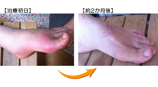 HKさんは薬に対するアナフィラキシーショックがあるため、鎮痛剤・治療薬等が使用できずに困ってらっしょいました。お知り合いにご紹介いただき、治療をスタート、根気よく治療を継続され2か月の後、腫れ・痛み等ほとんどなくなり、通常通り生活を送られるようになられました。鍼灸治療の適応範囲の広さに驚かれ、鍼で痛風に効くなんてビックリです!とご感想いただきました!